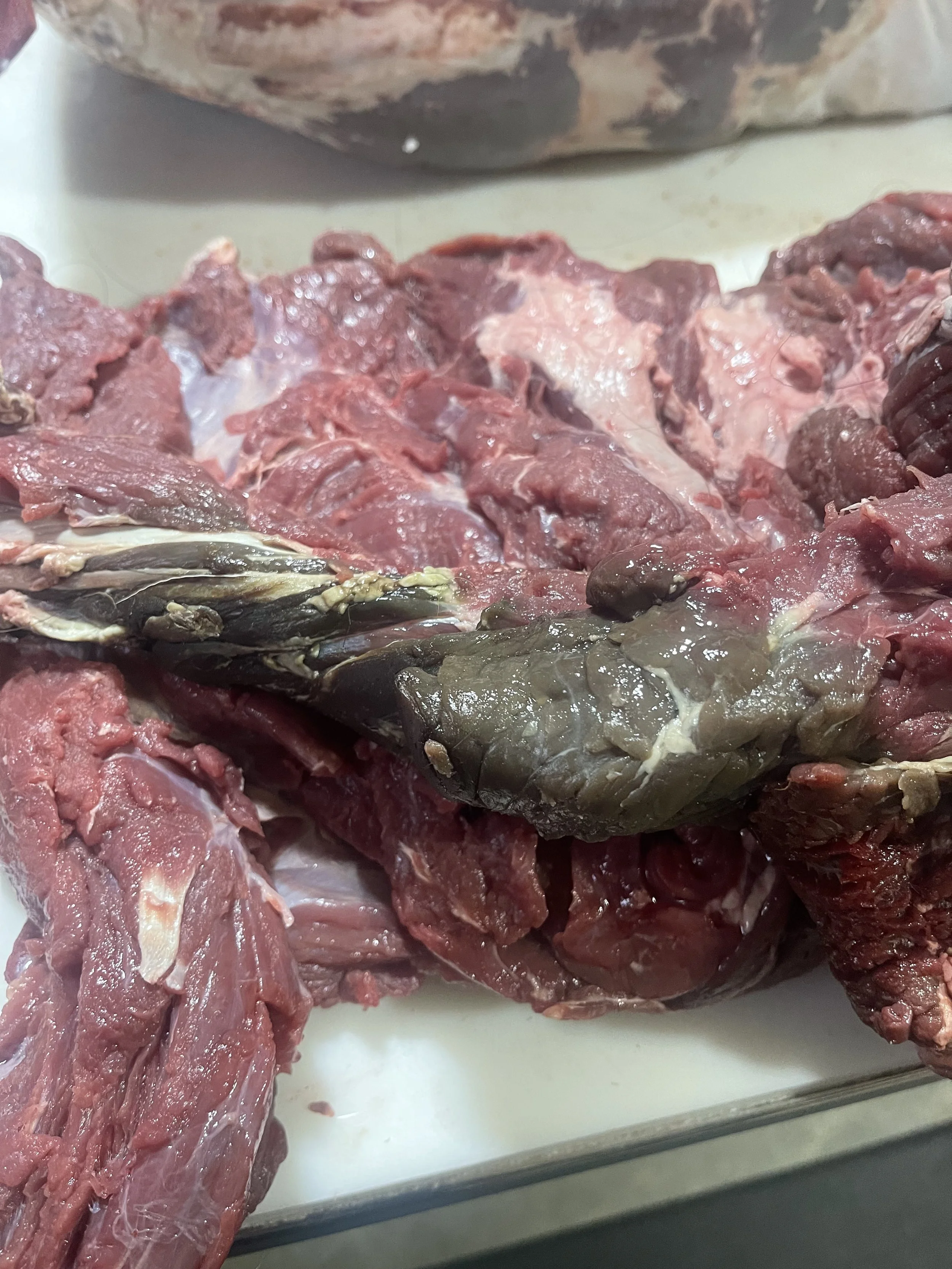 One thing I like to do when it’s really hot outside is cut along a seam in the rear quarters and spread the meat open to expose the femur. Meat will spoil from the bone out and the bones hold a lot of heat.