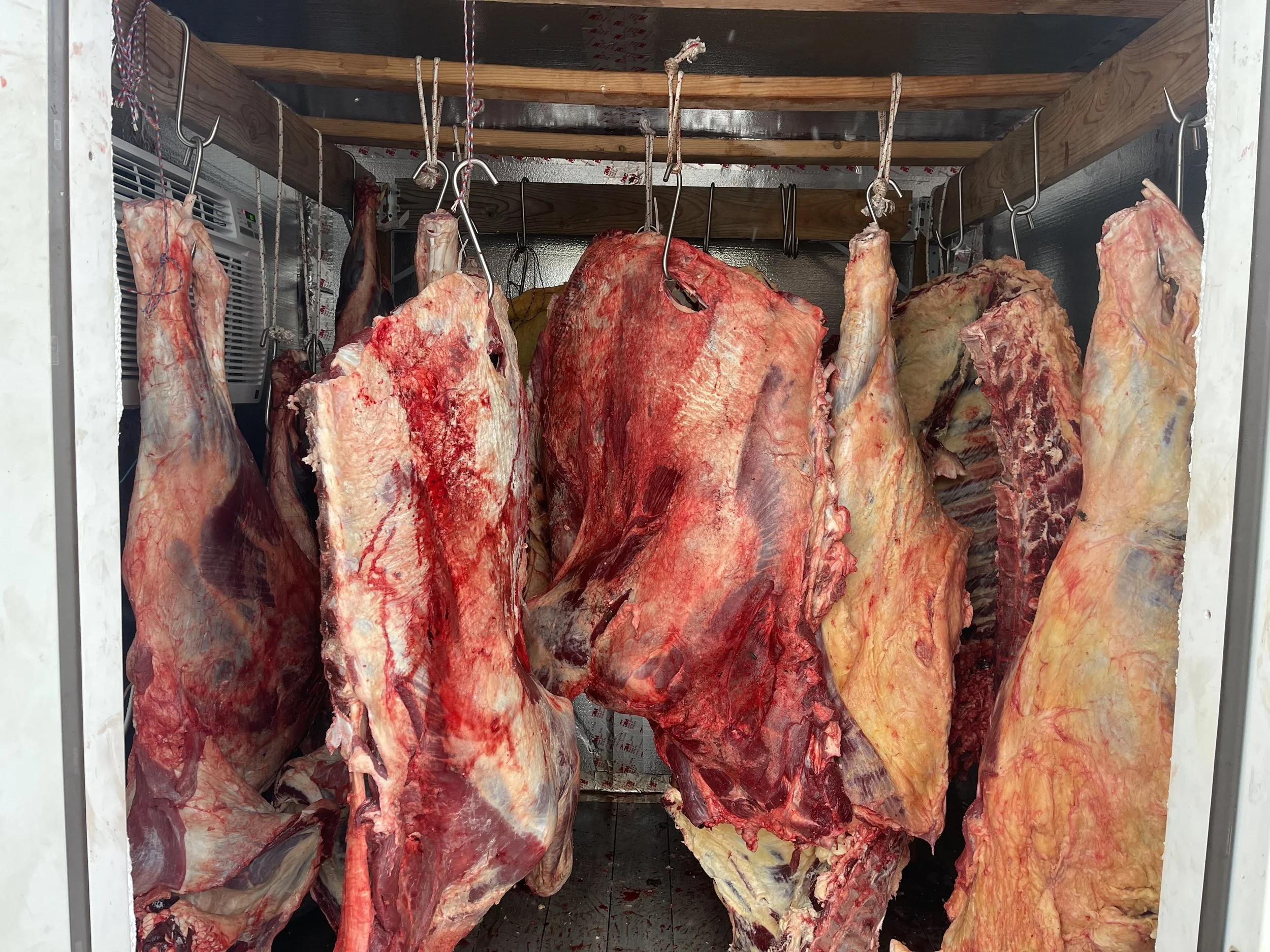 Beef will need to be split and quartered to hang in the cooler. All cuts will be boneless